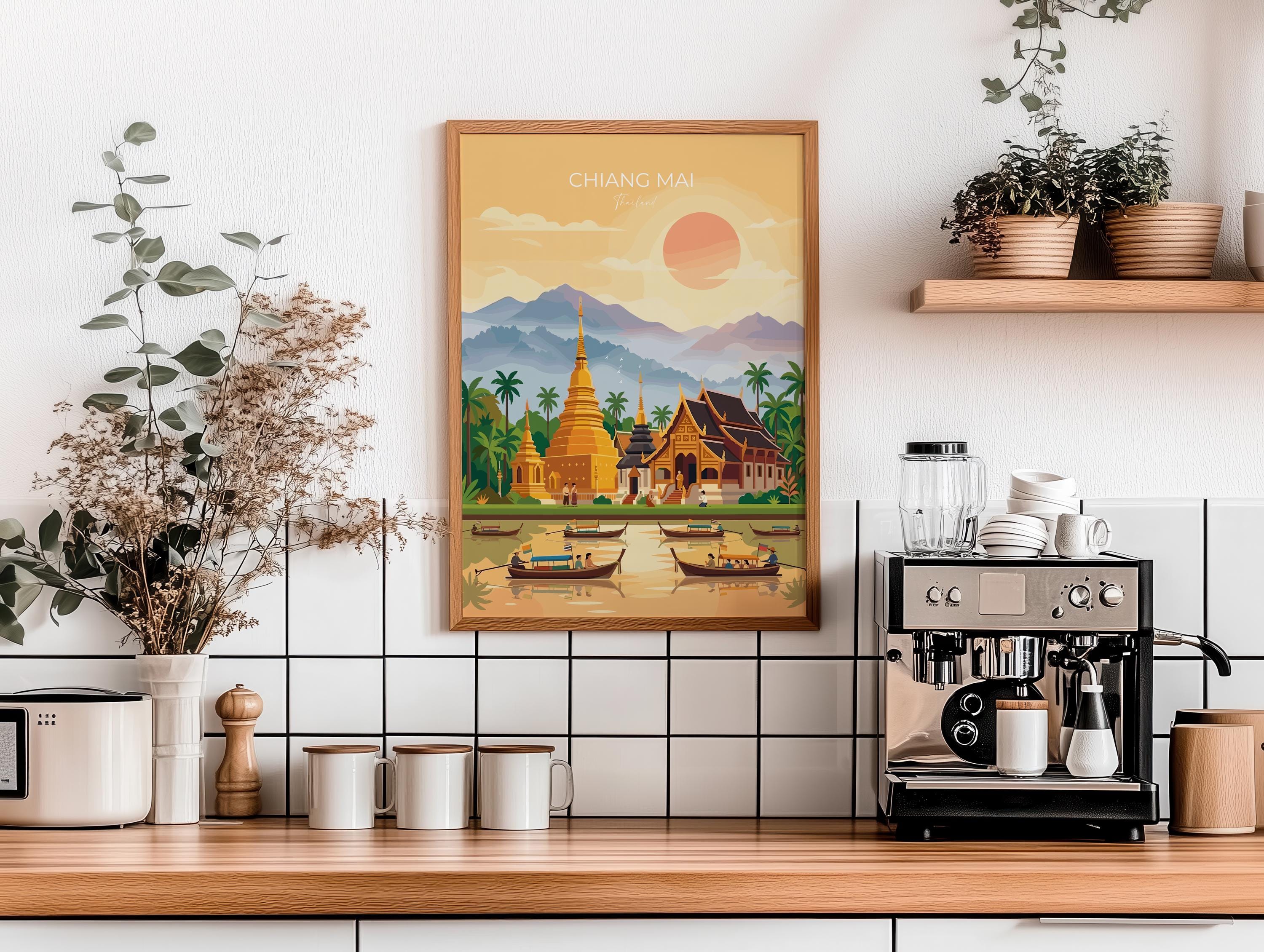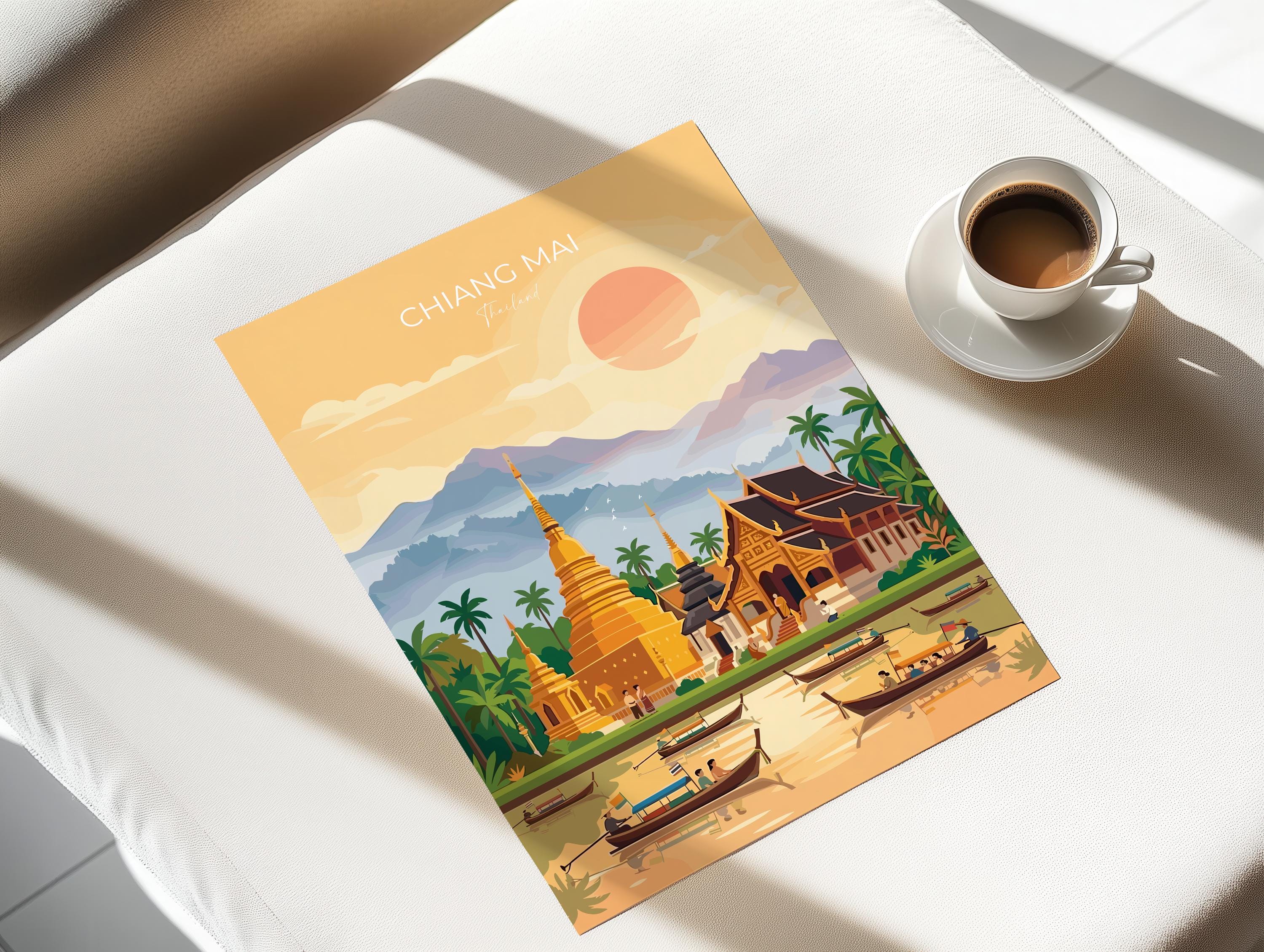 Chiang Mai Travel Poster, Travel Print of Chiang Mai, Thailand, Chiang Mai Art Lovers Gift, Wall Art Print