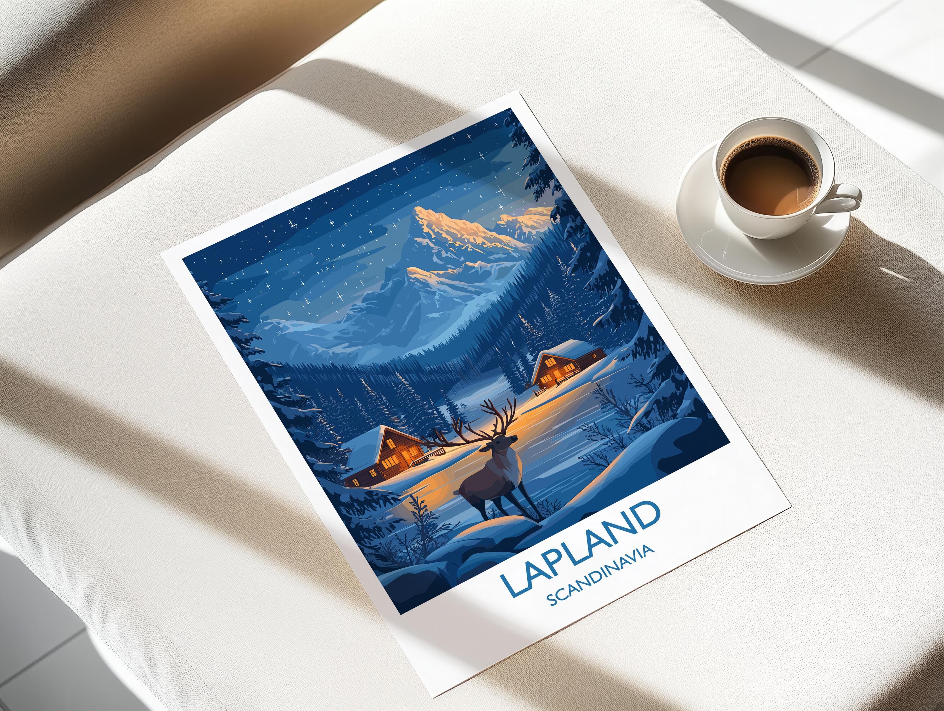 Lapland Travel Print, Travel Poster of Lapland, Scandinavia Poster, Lapland Art Gift, Finland Art Lovers Travel Gift
