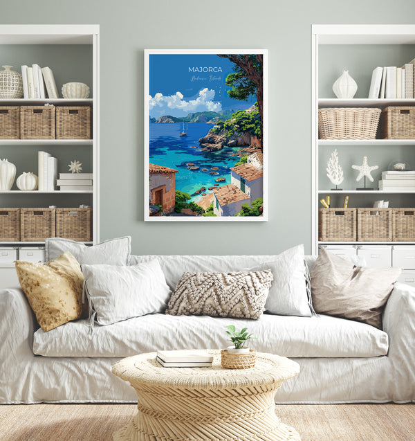 Majorca Travel Poster, Travel Print of Majorca, Balearic Islands Art Lovers Gift, Majorca Wall Art