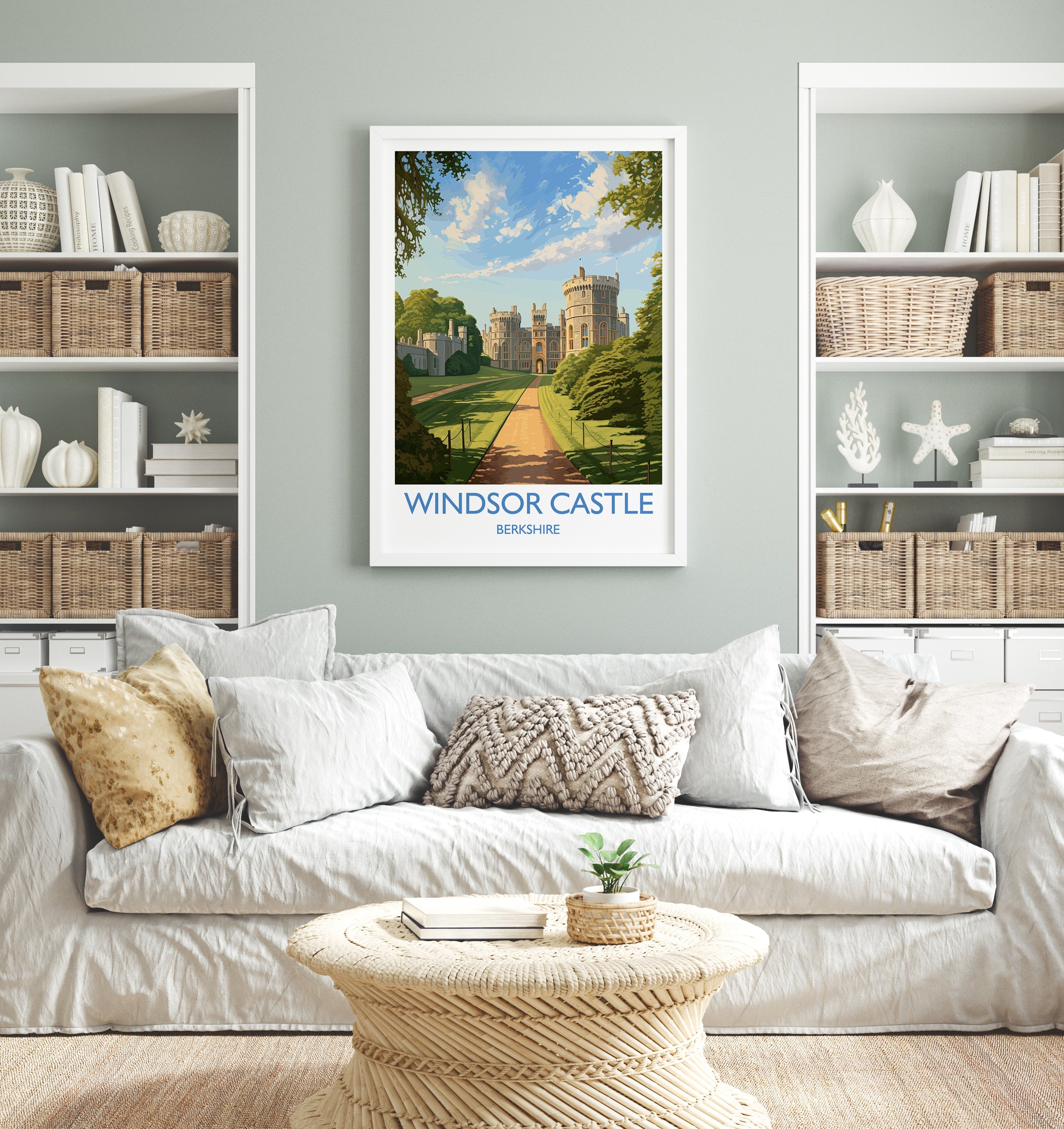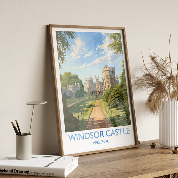 Windsor Castle Travel Poster Wall Art, Travel Print of Windsor Castle, Berkshire, England, Windsor Castle Art Lovers Gift, Long Walk