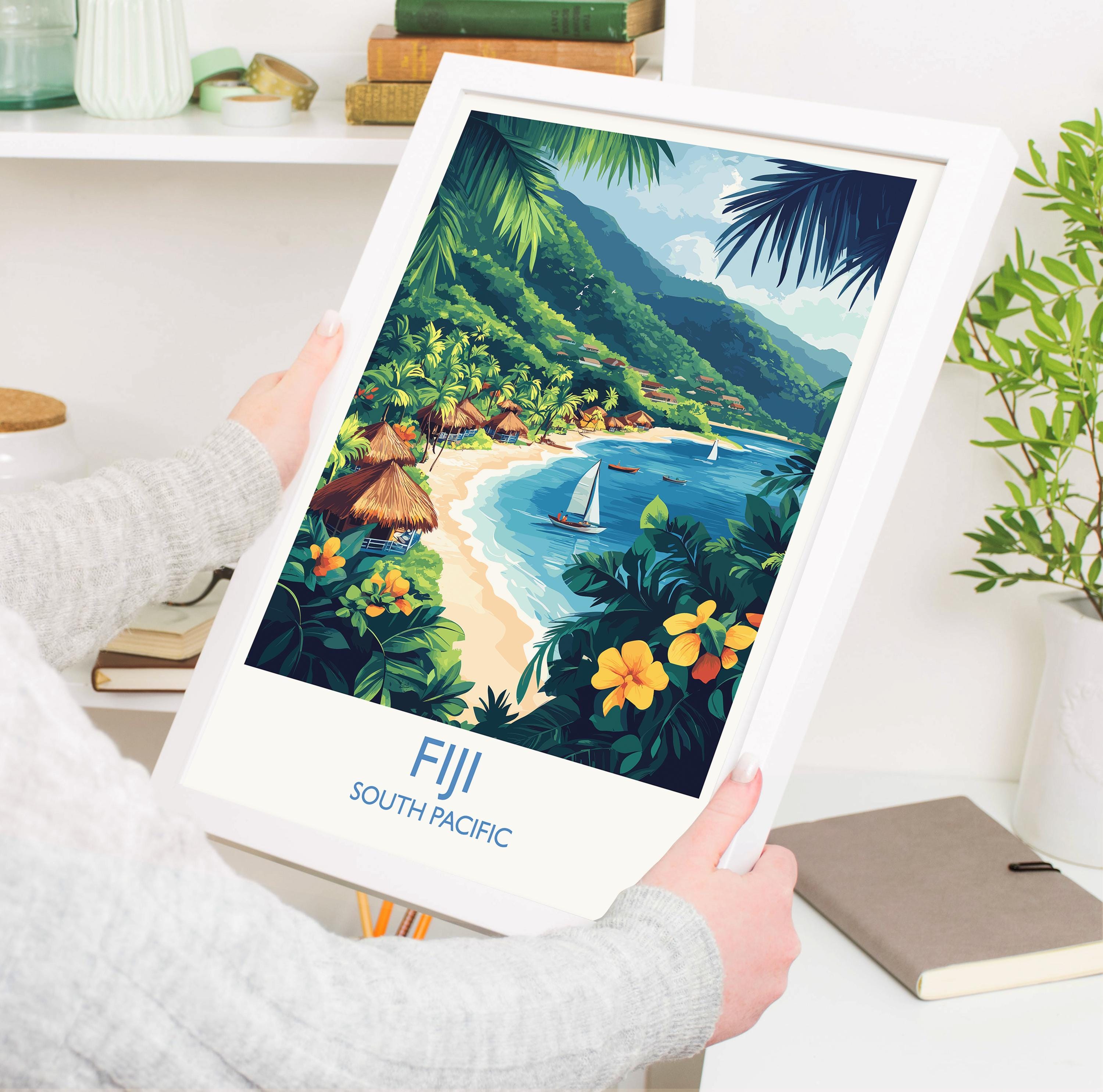Fiji Travel Poster Wall Art, Travel Print of Fiji, South Pacific Islands Art Lovers Gift