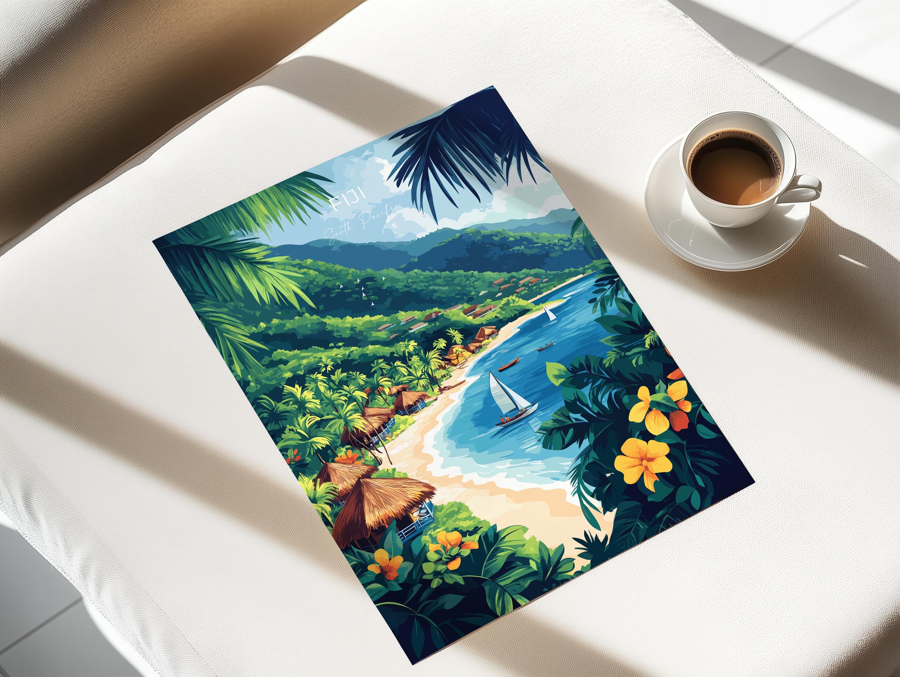 Fiji Travel Print Wall Art, Travel Poster of Fiji, South Pacific Islands Art Lovers Gift