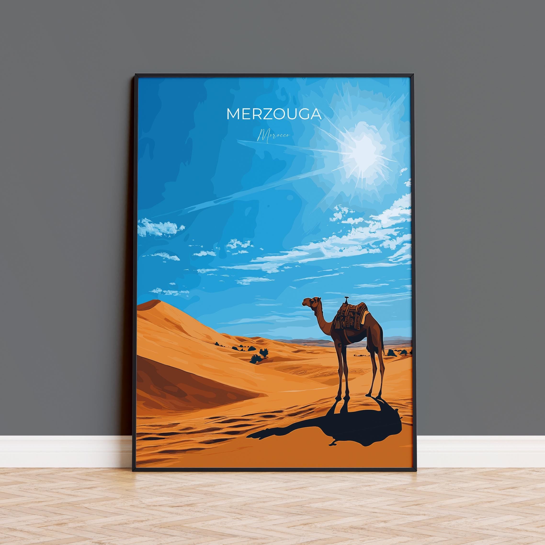 Merzouga Travel Poster Wall Art, Travel Print of Merzouga, Merzouga Art Lovers Gift, Morocco Wall Art