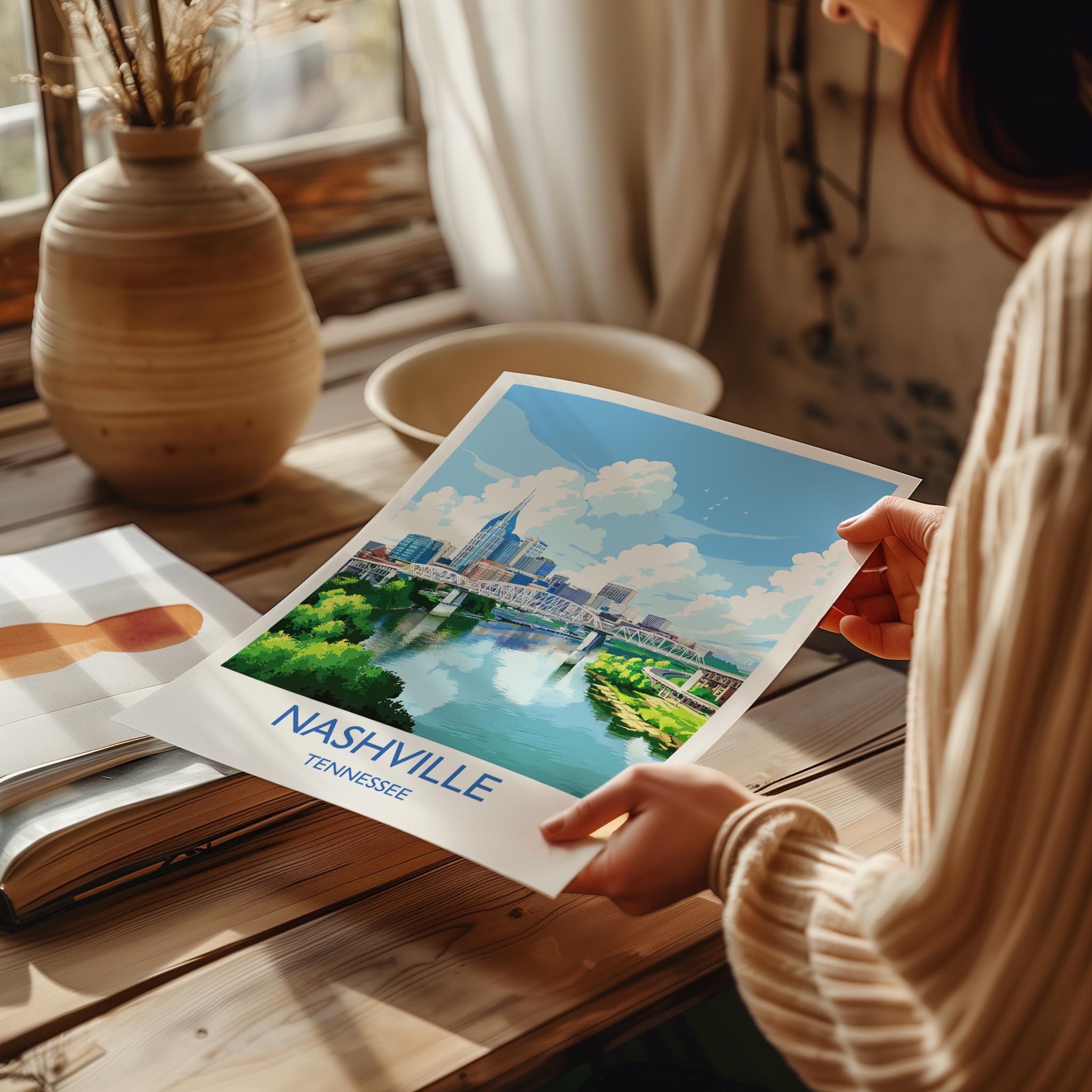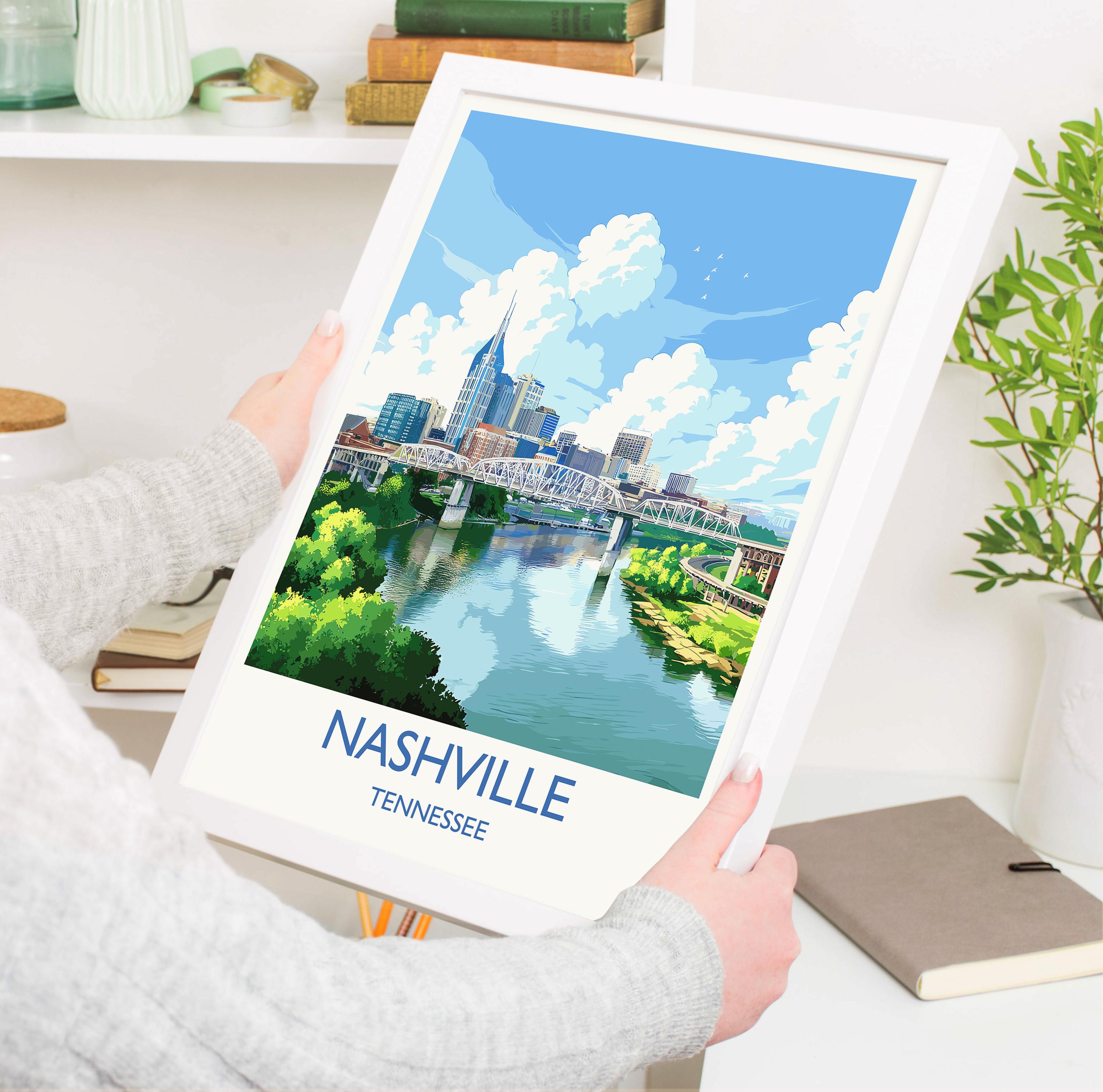 Nashville Travel Print Wall Art, Travel Poster of Nashville, Nashville Art Lovers Gift, Tennessee USA Art Gift