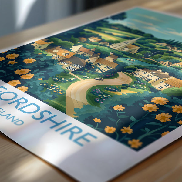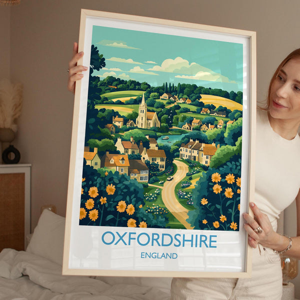 Oxfordshire Travel Poster Wall Art, Oxfordshire Travel Print, English Countryside Art Gift, Wall Art Print