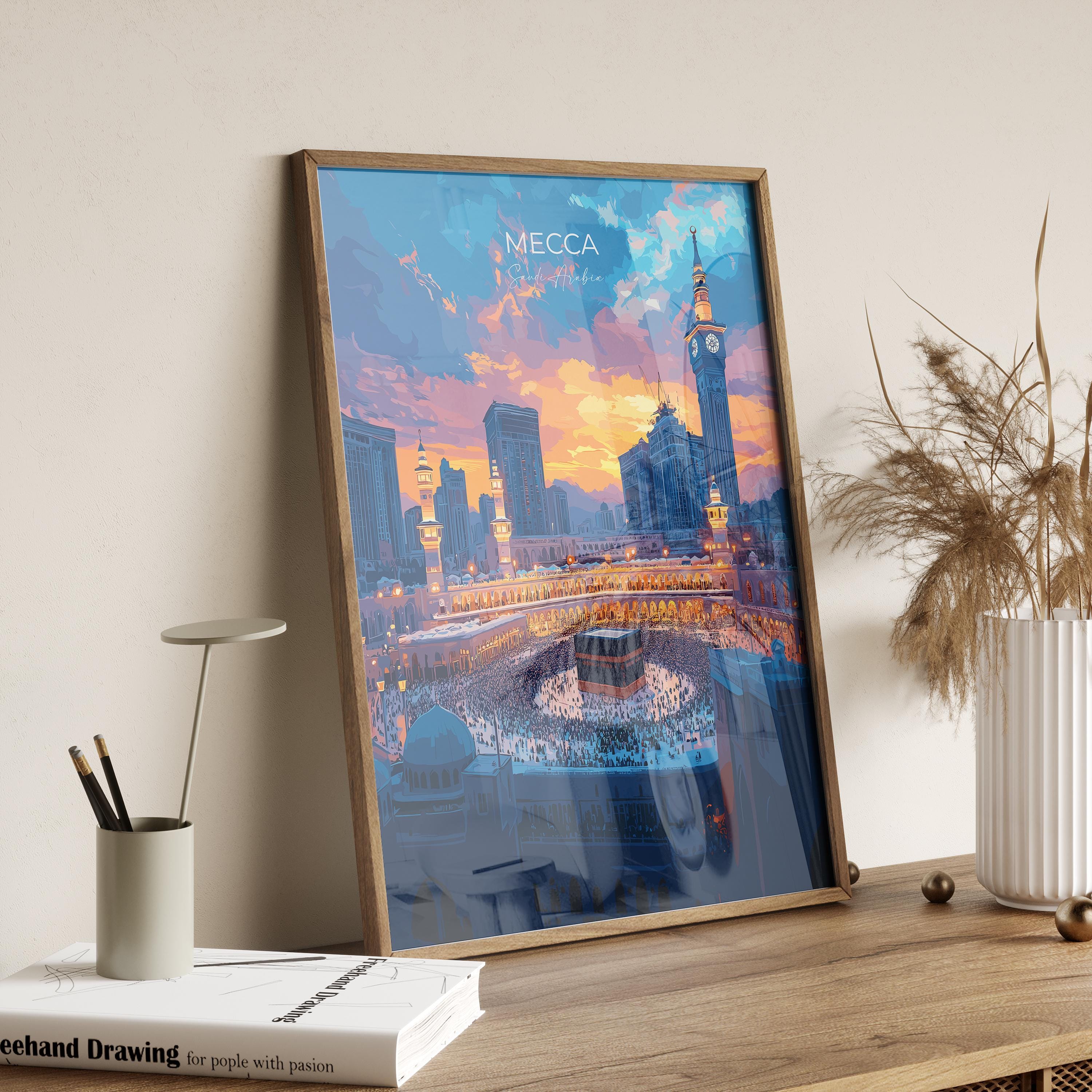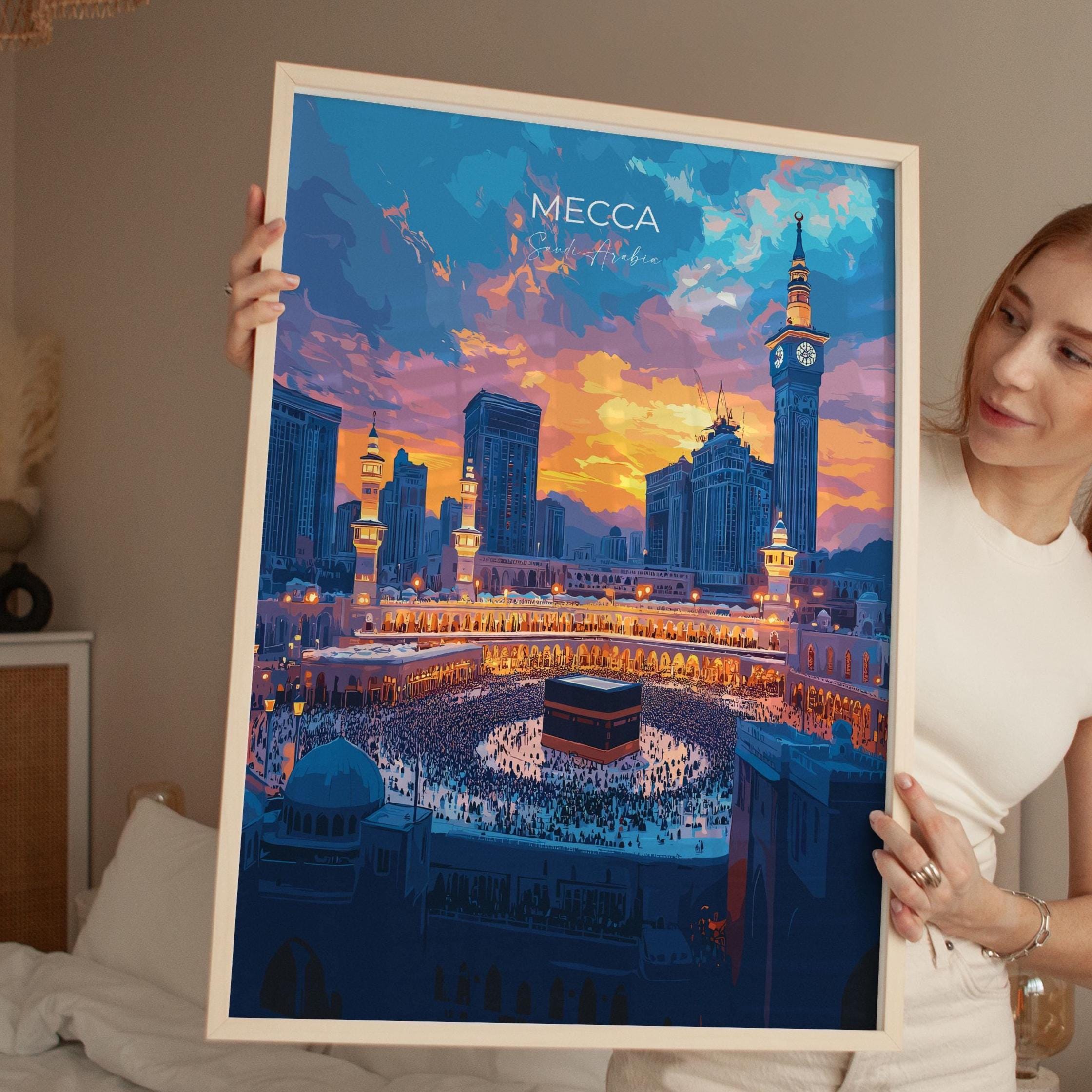 Mecca Print Wall Art, Mecca Travel Poster, Saudi Arabia Wall Art Gift, Mecca Art Lovers Gift, Travel Wall Decor