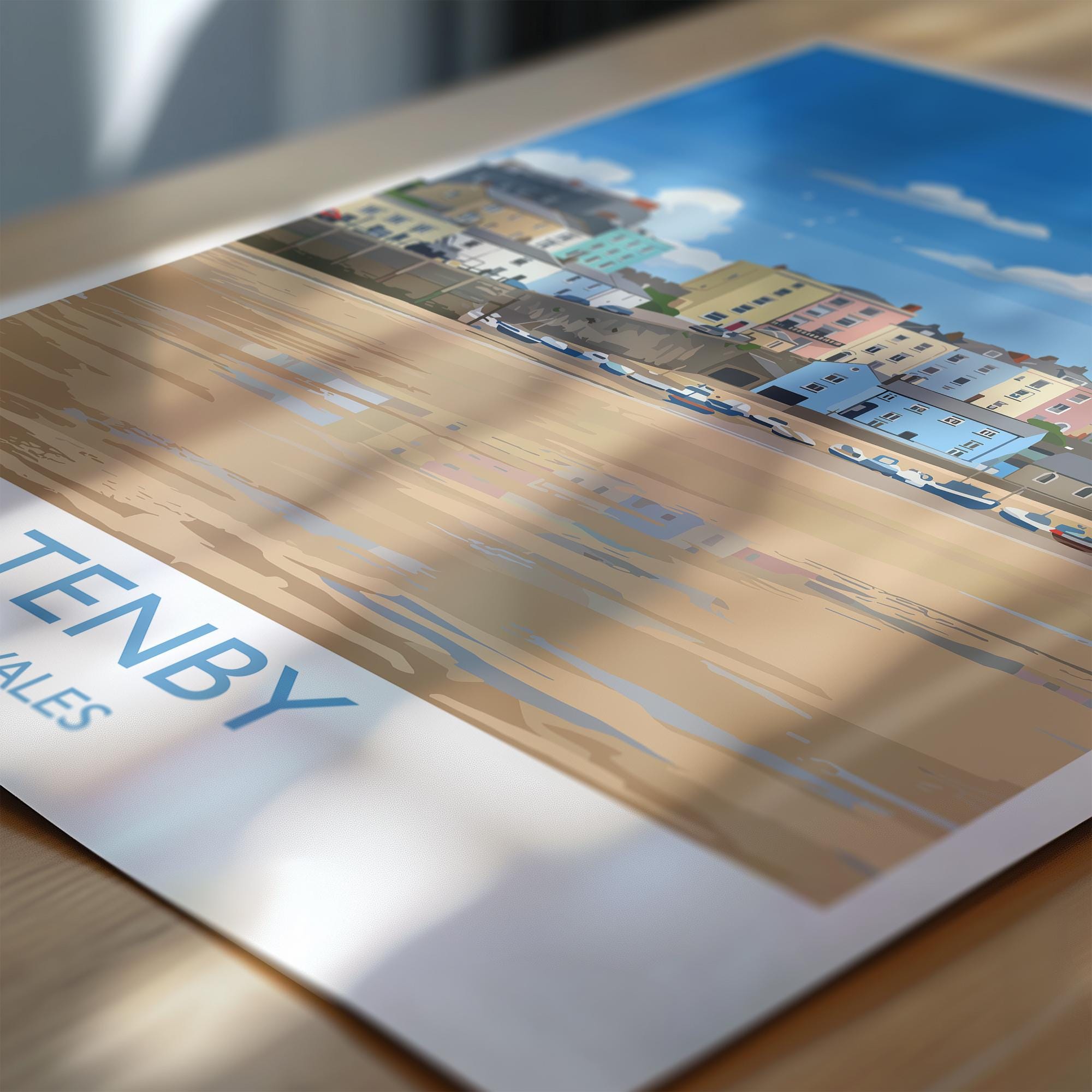 Tenby Travel Poster Wall Art, Tenby Travel Print, Wales, Pembrokeshire Coast Art Gift, Welsh Wall Art Print