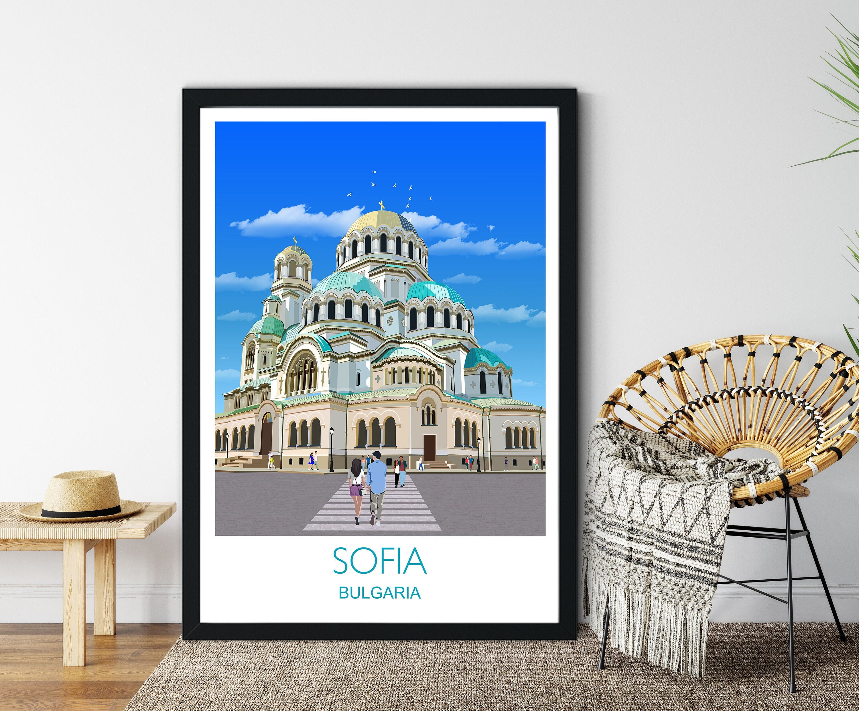Sofia Travel Poster, Travel Print of Sofia, Bulgaria, Sofia Cityscape, St Alexander Nevsky Cathedral, Sofia Gift