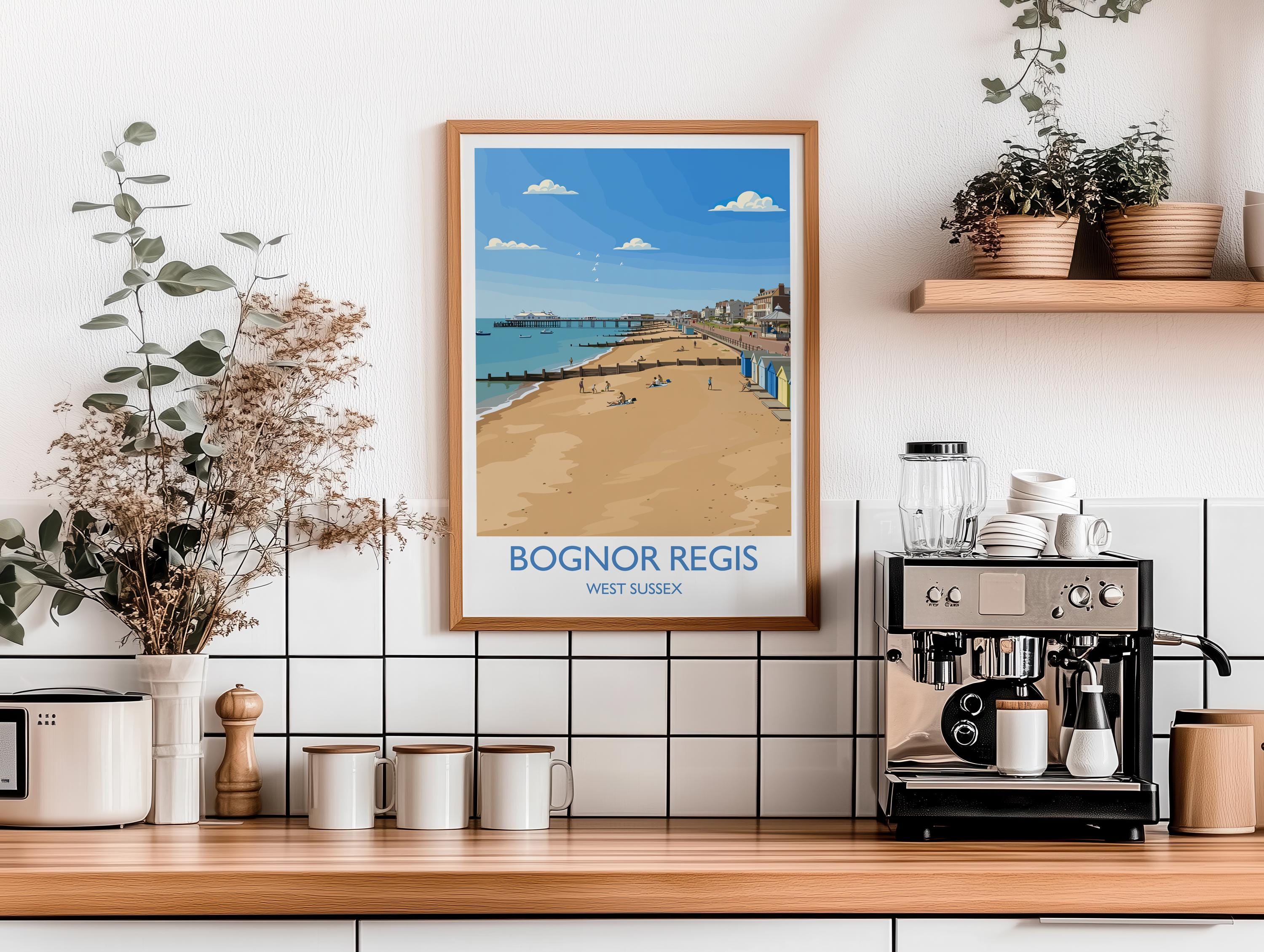 Bognor Regis Travel Poster Wall Art, Travel Print of Bognor Regis, West Sussex, English Seaside Town Art, England Art Gift