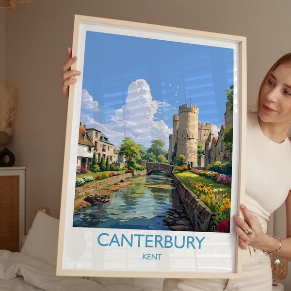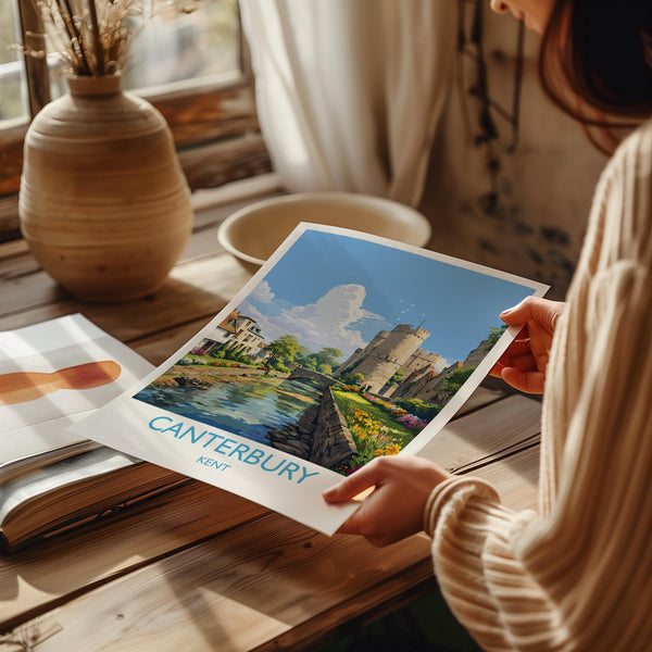 Canterbury Travel Print, Travel Poster of Canterbury, England, Canterbury Cathedral, Kent Art Lovers Gift, Wall Art Print