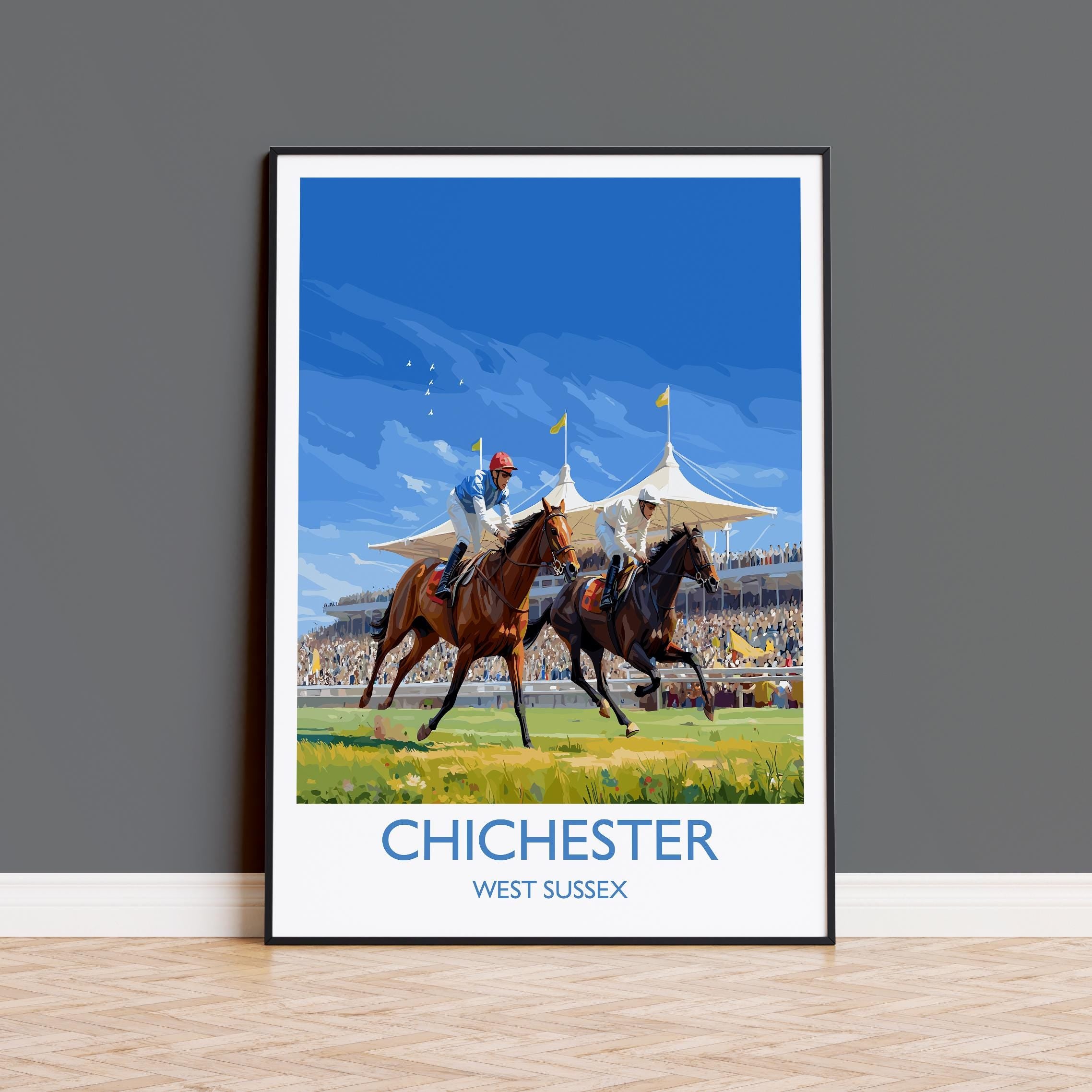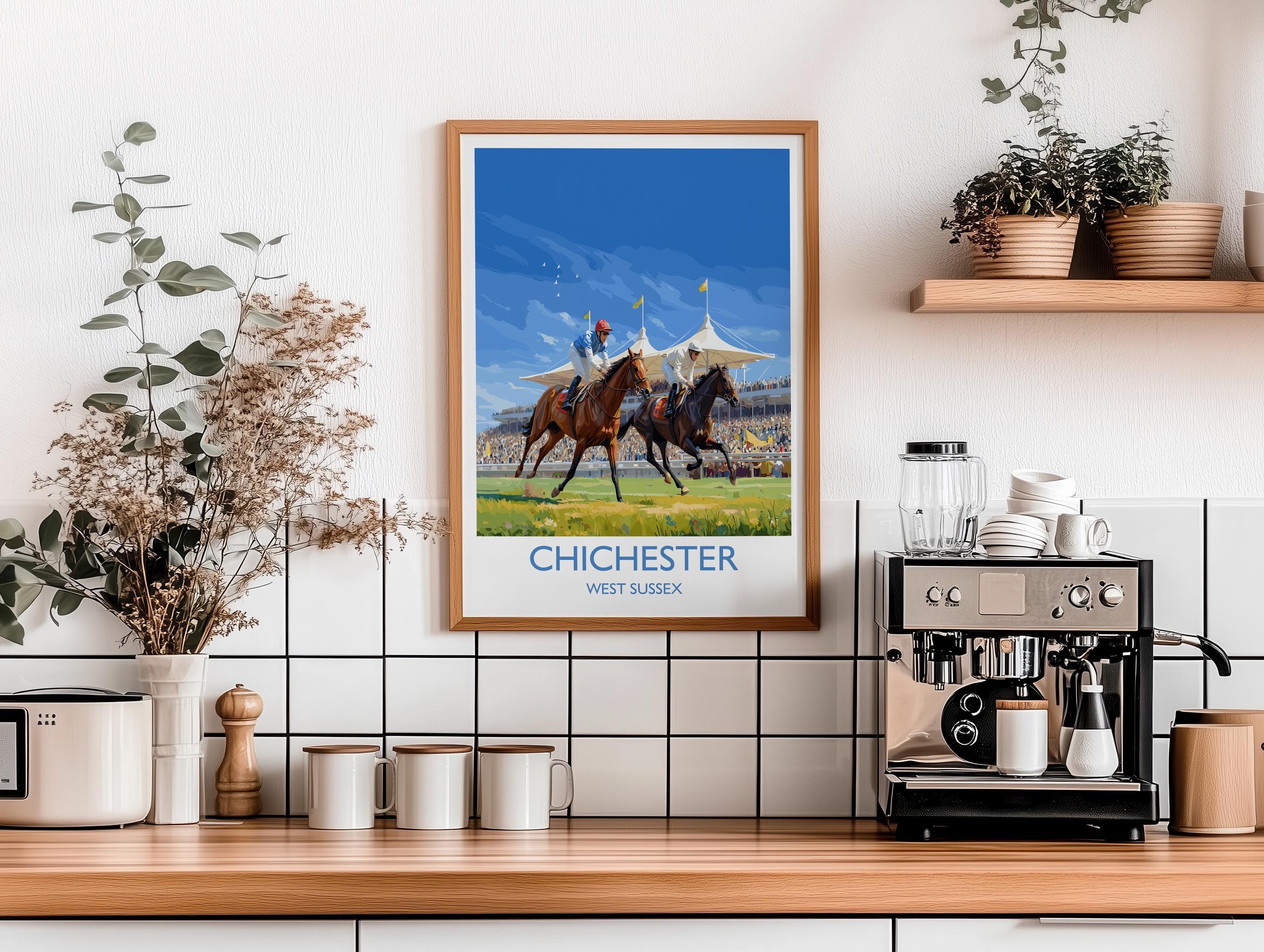 Chichester Horse Racing Poster – Elegant Goodwood Race Day Print, West Sussex Countryside, Vintage British Sporting Art