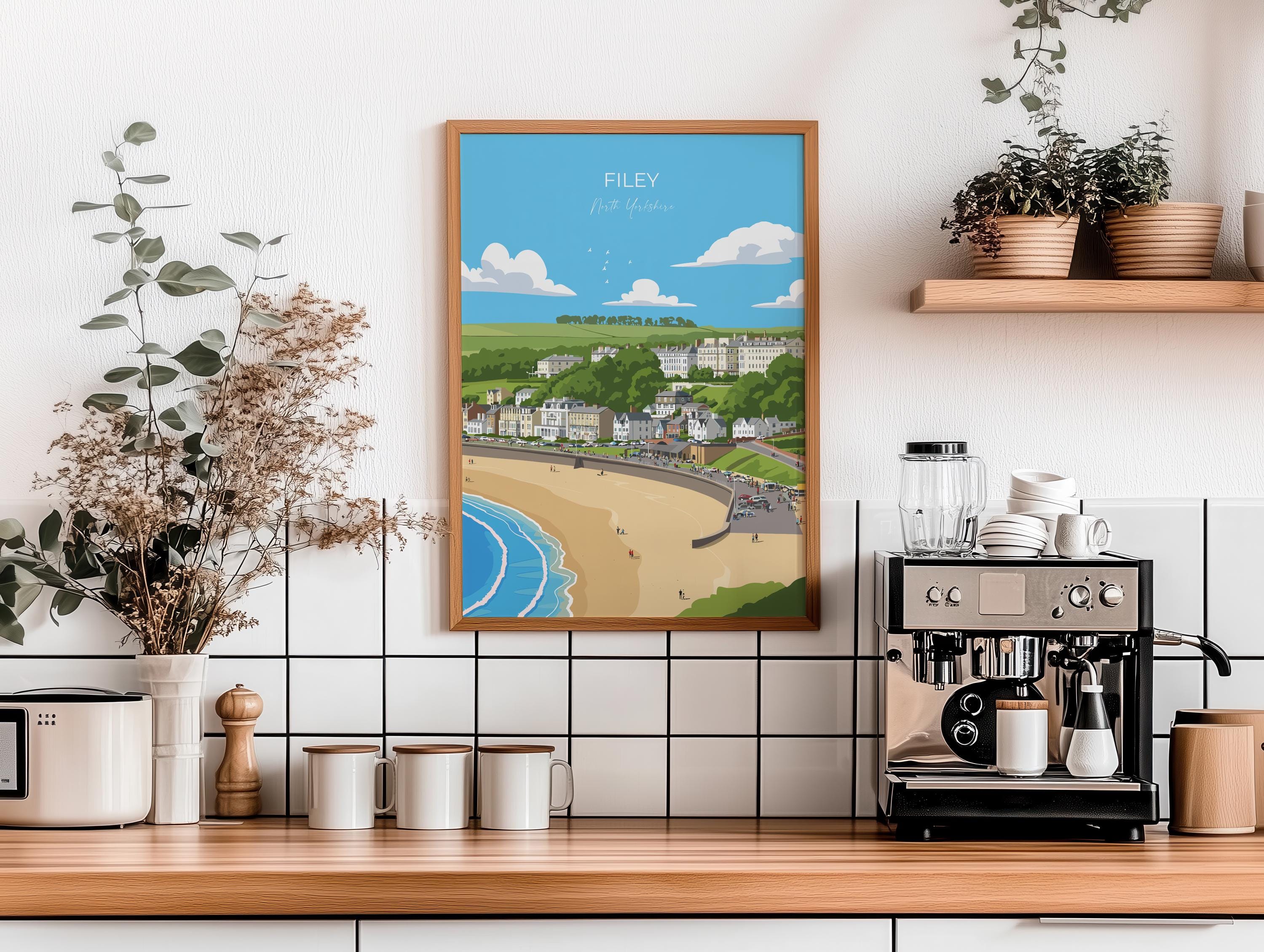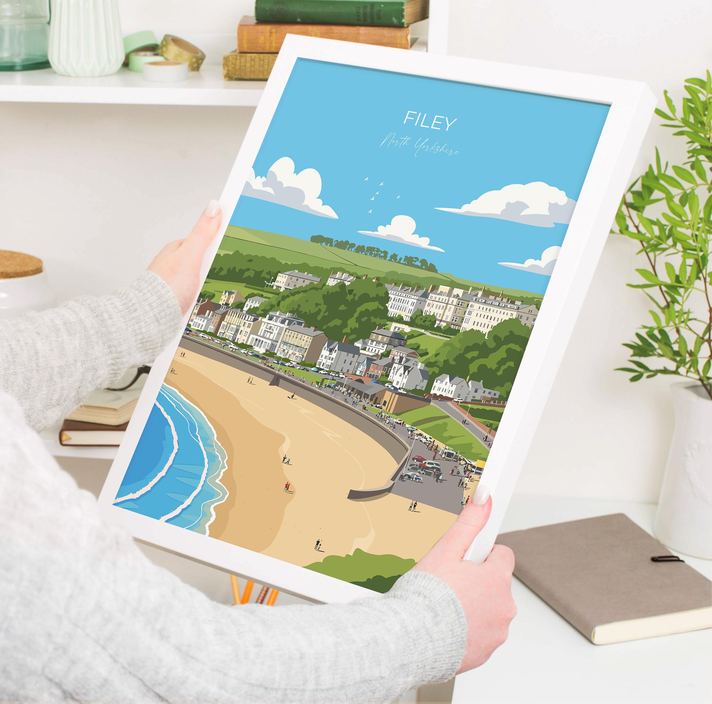 Filey Travel Poster, Travel Print of Filey, Yorkshire Gift, England, North Yorkshire Art, Filey Gift, Wall Art Print