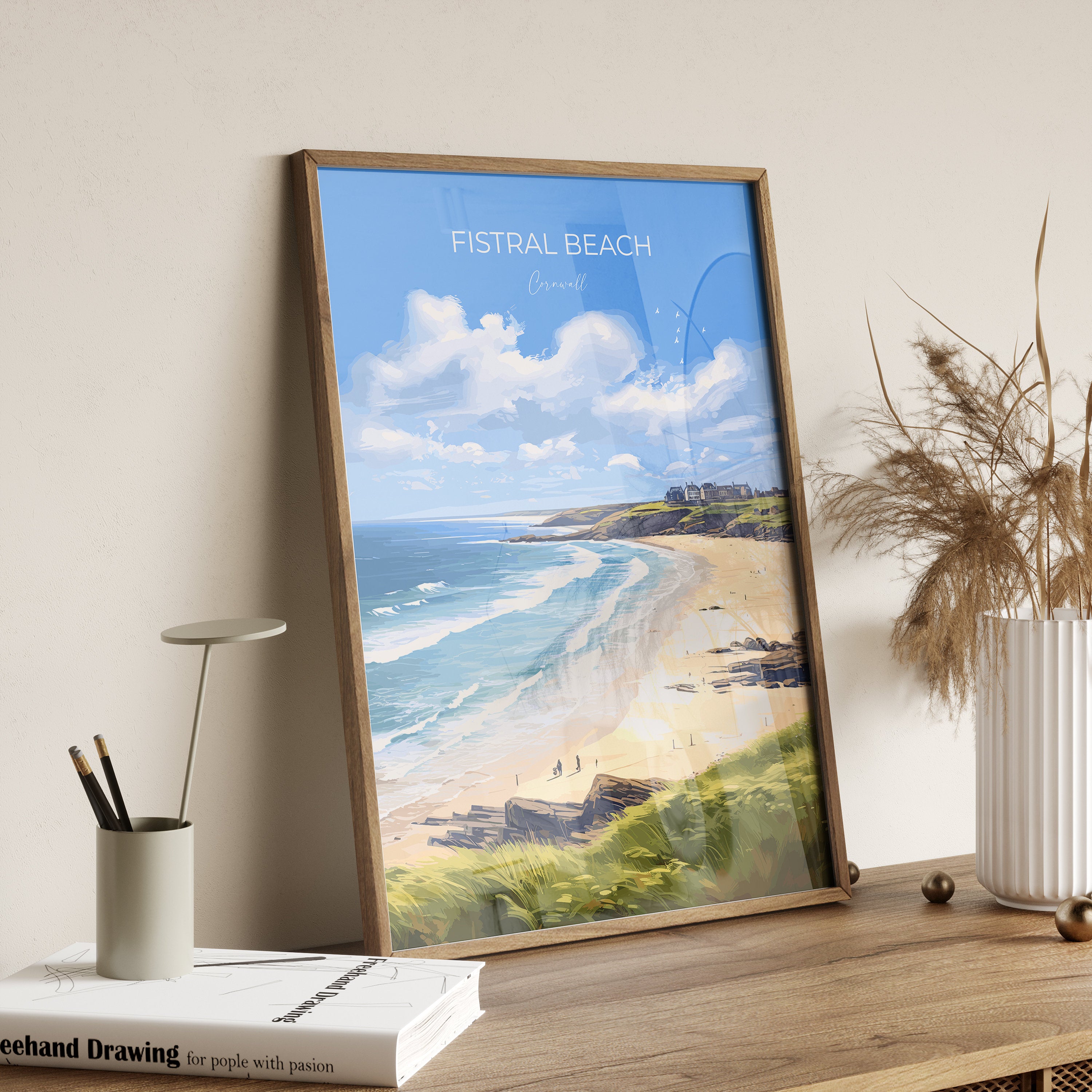 Fistral Beach Print, Travel Poster of Cornwall, England, Cornwall Art, Fistral Beach Gift, Wall Art Print