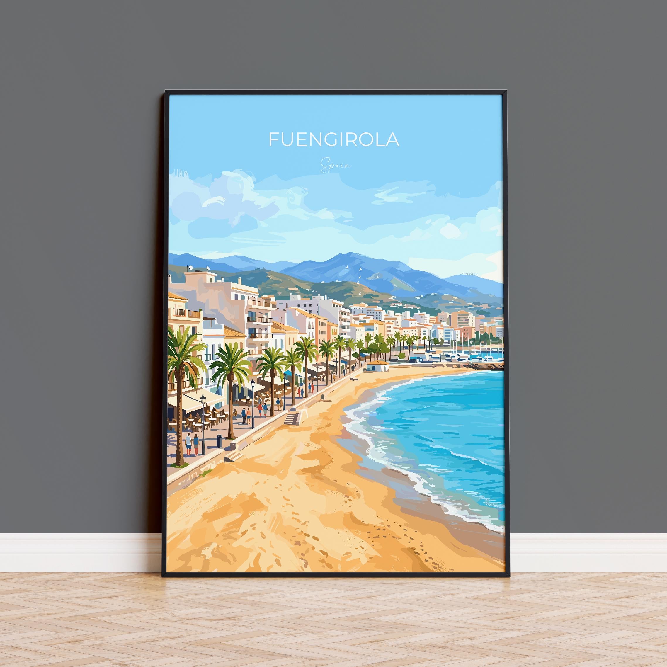Fuengirola Spain Travel Print, Costa del Sol Beach Wall Art, Seaside Promenade Poster, Spanish Coastal Illustration, Holiday Decor