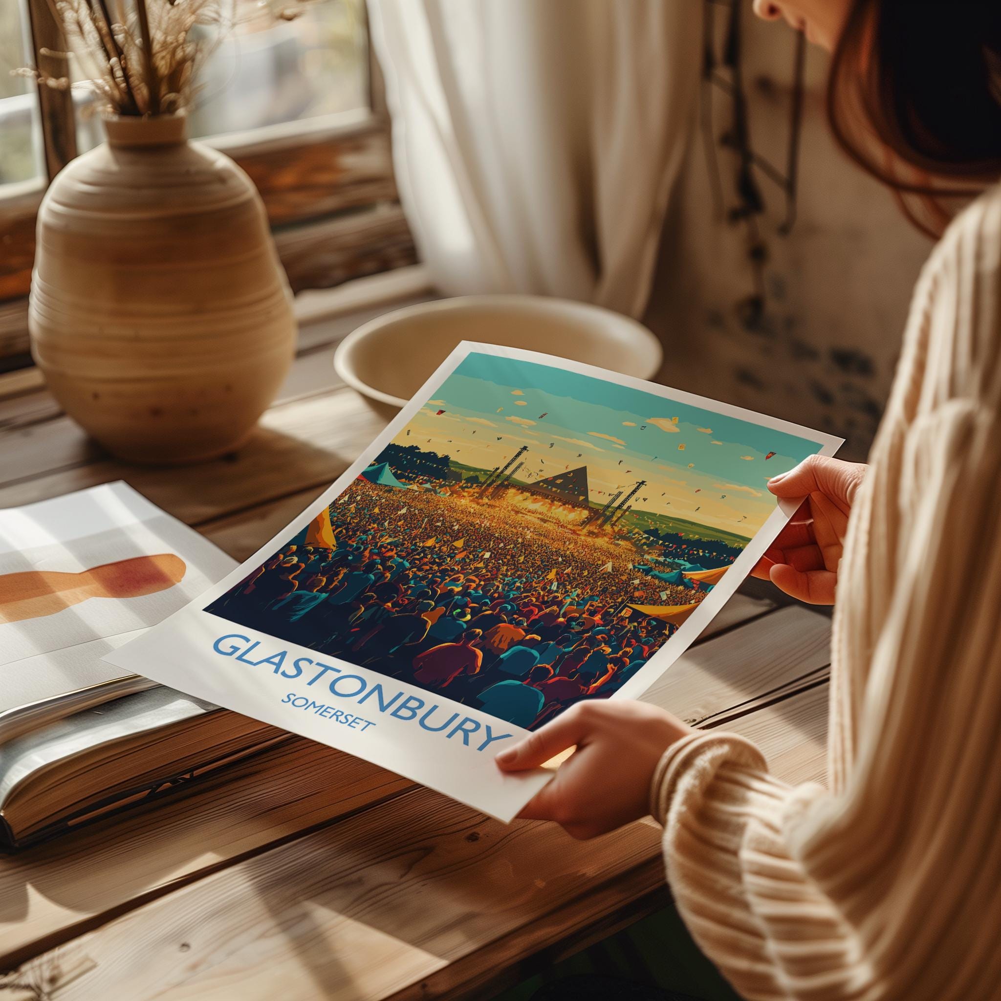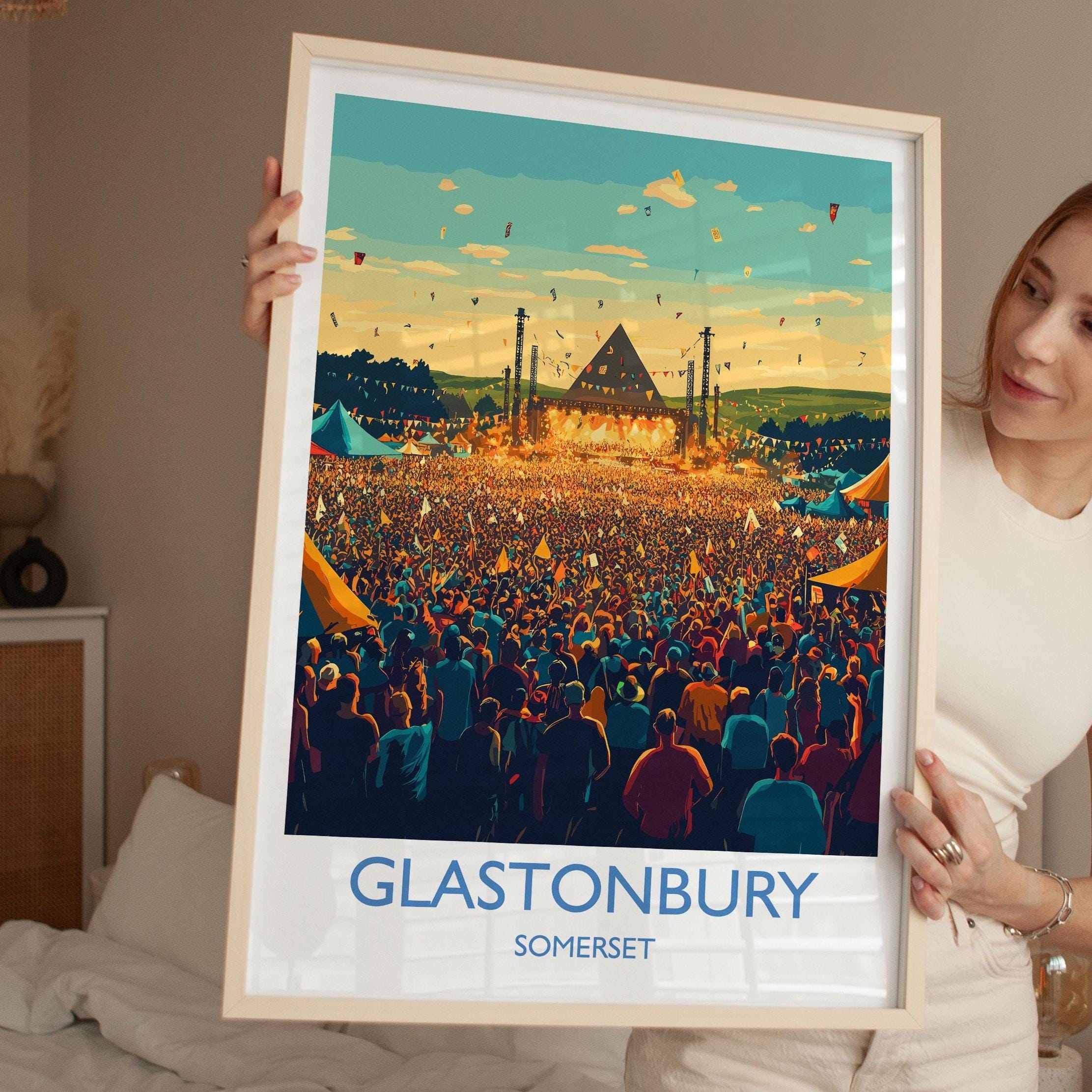 Glastonbury Travel Print, Travel Poster of Glastonbury, Somerset, England, Glastonbury Art, Festival Art Gift, Somerset Wall Art Print