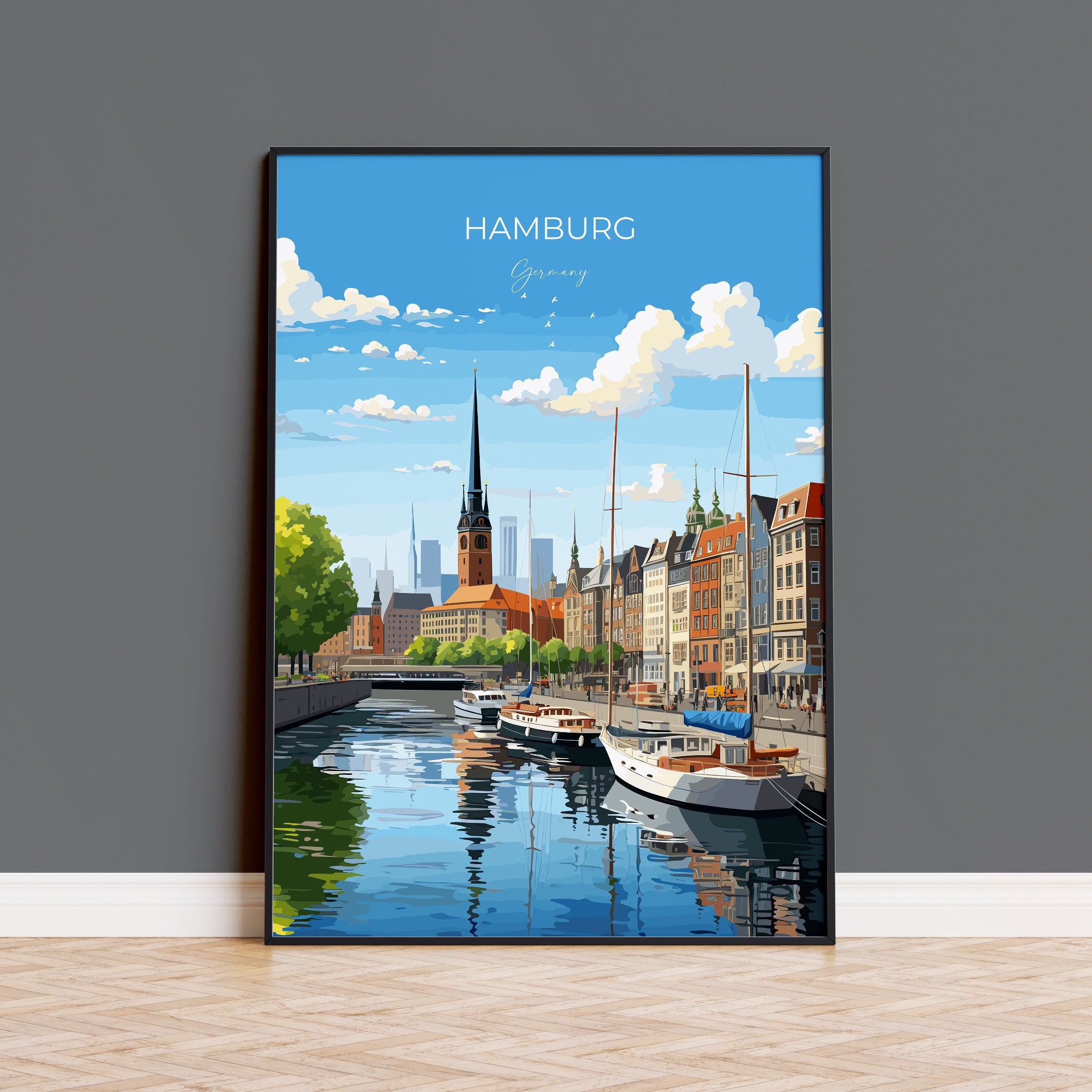 Hamburg Print, Travel Poster of Hamburg, Hamburg Gift Art, Germany Wall Art, Travel Gift