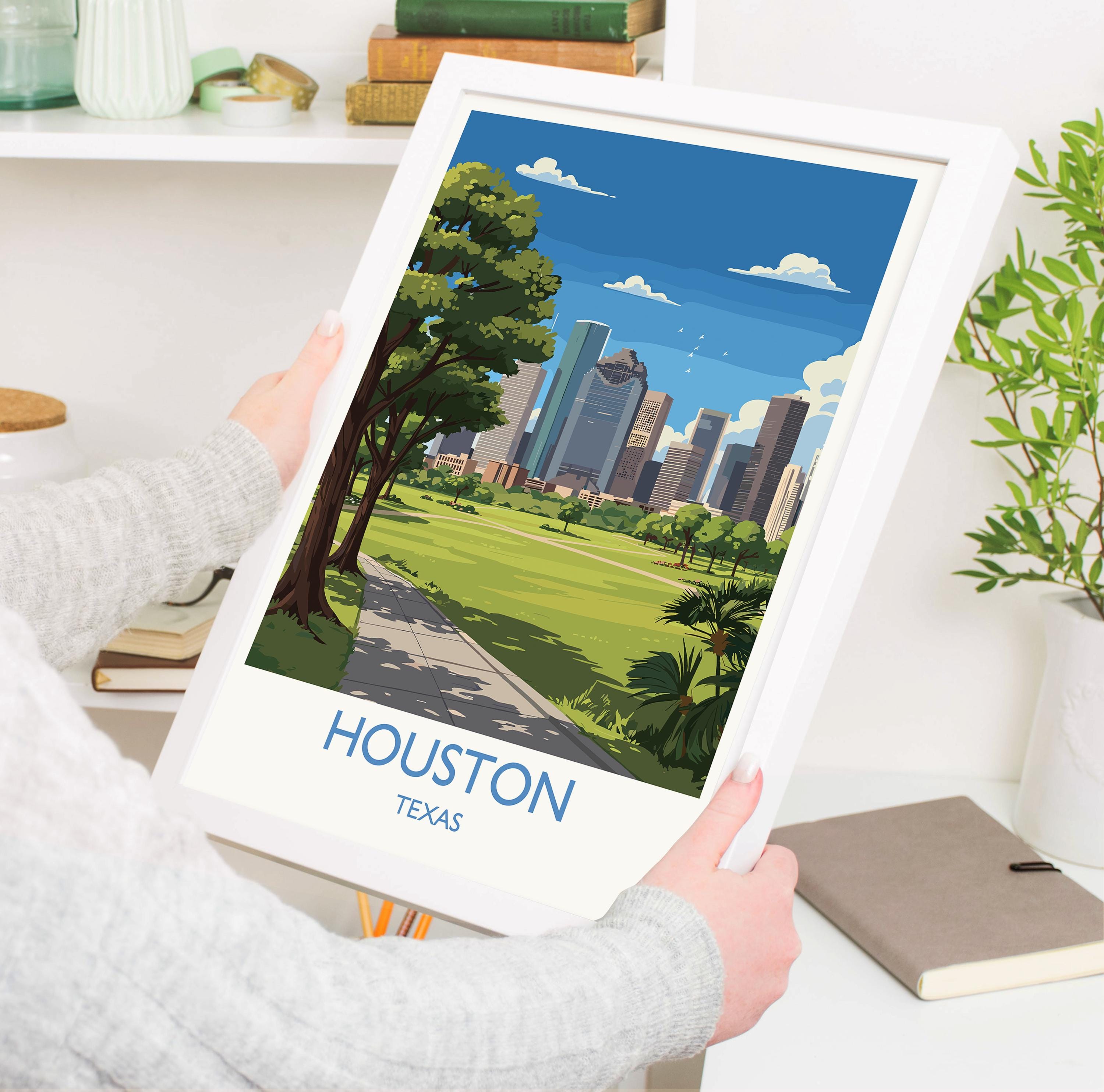 Houston Travel Wall Art Print, Travel Poster of Houston, Texas, US City Art Lovers Gift, USA Gift,