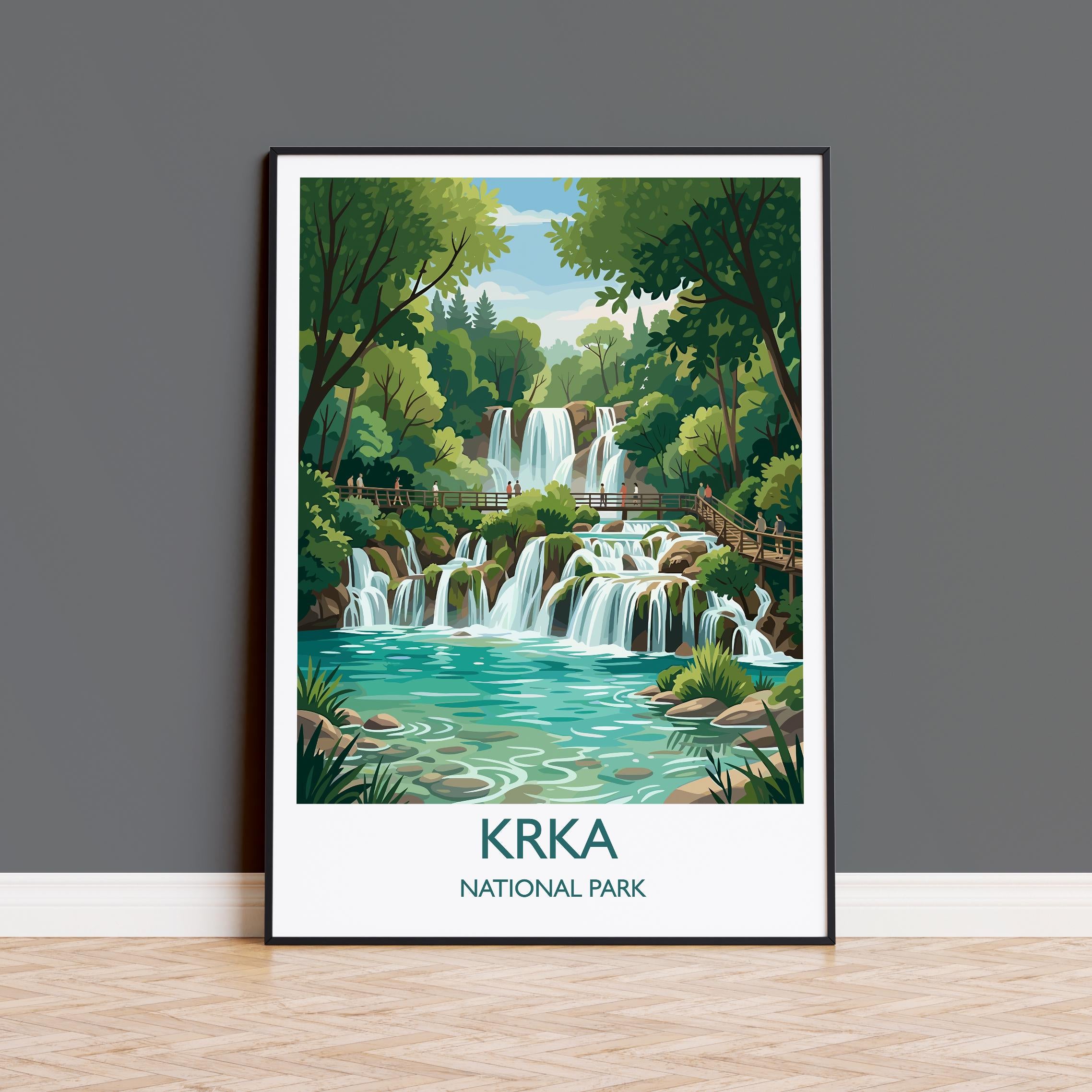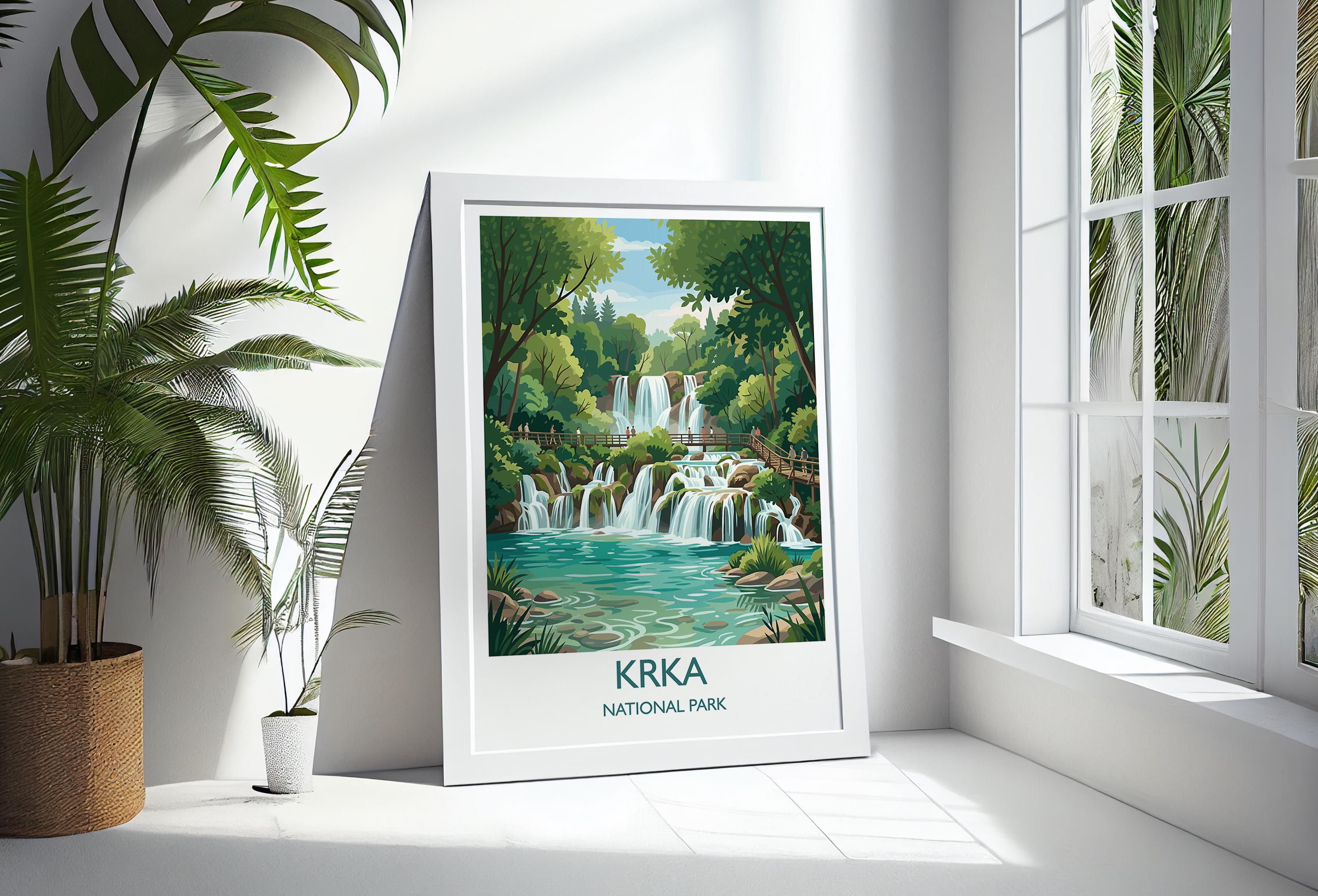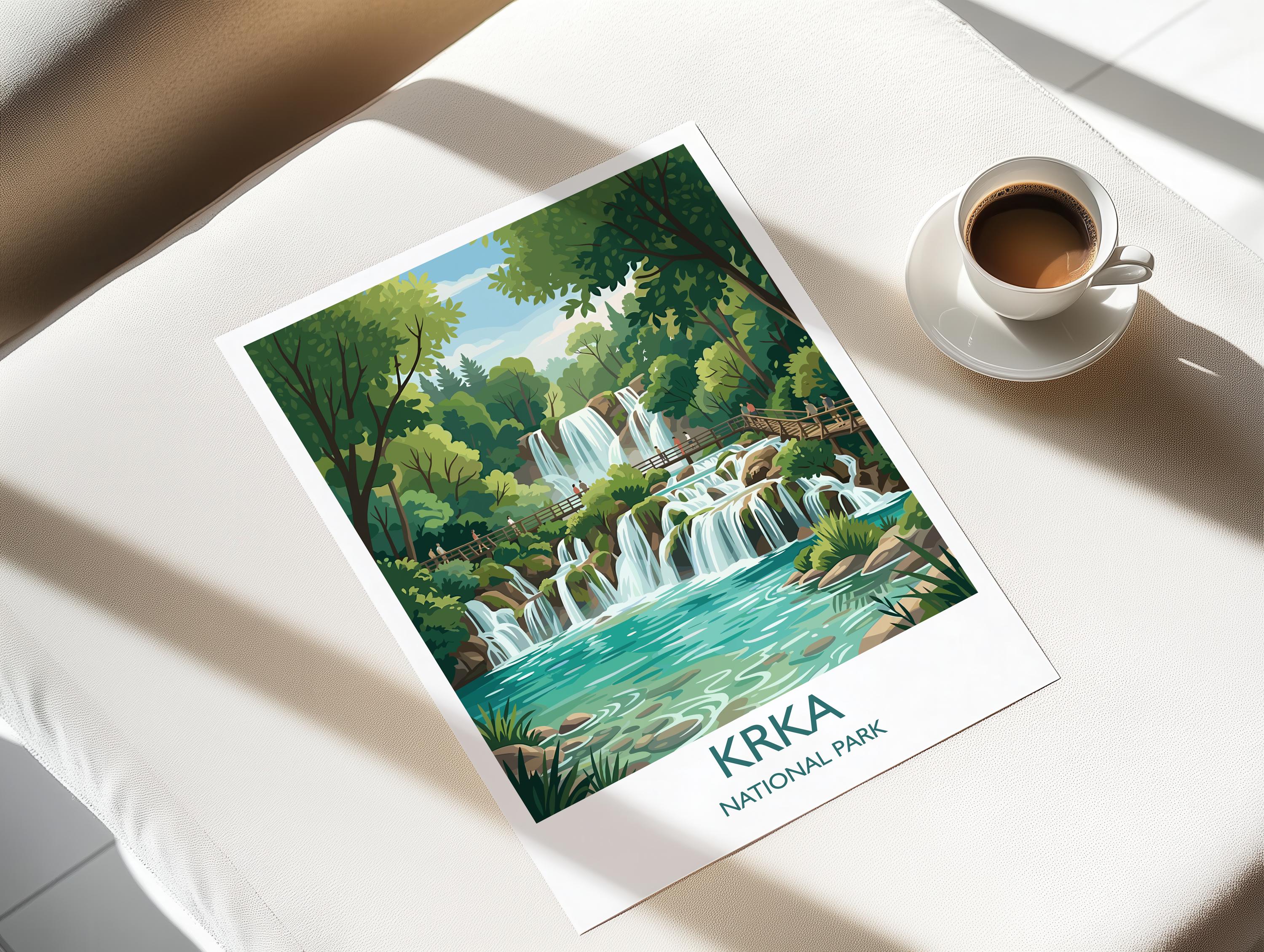 Krka National Park Waterfalls Poster, Croatia Travel Print, Skradinski Buk Wall Art, Croatian Landscape Illustration, Nature Lover Gift