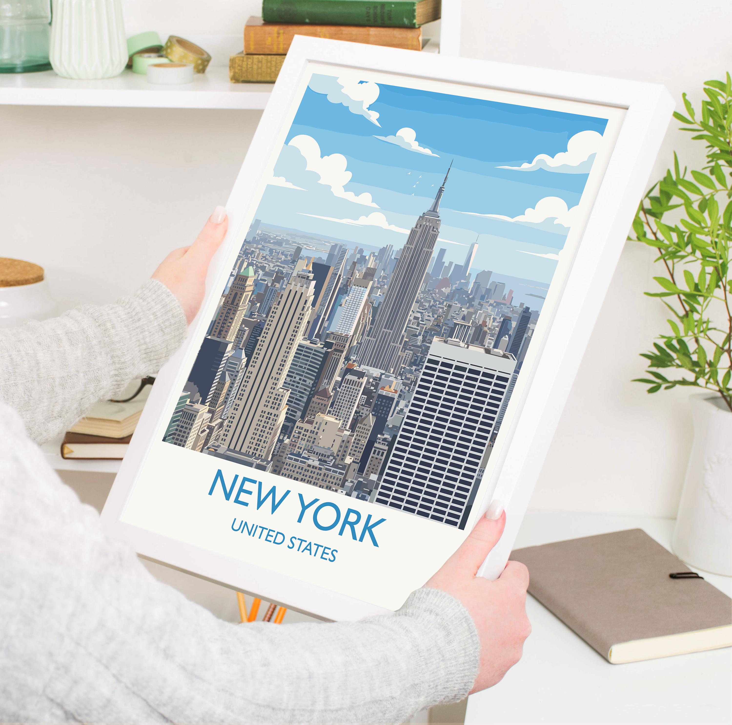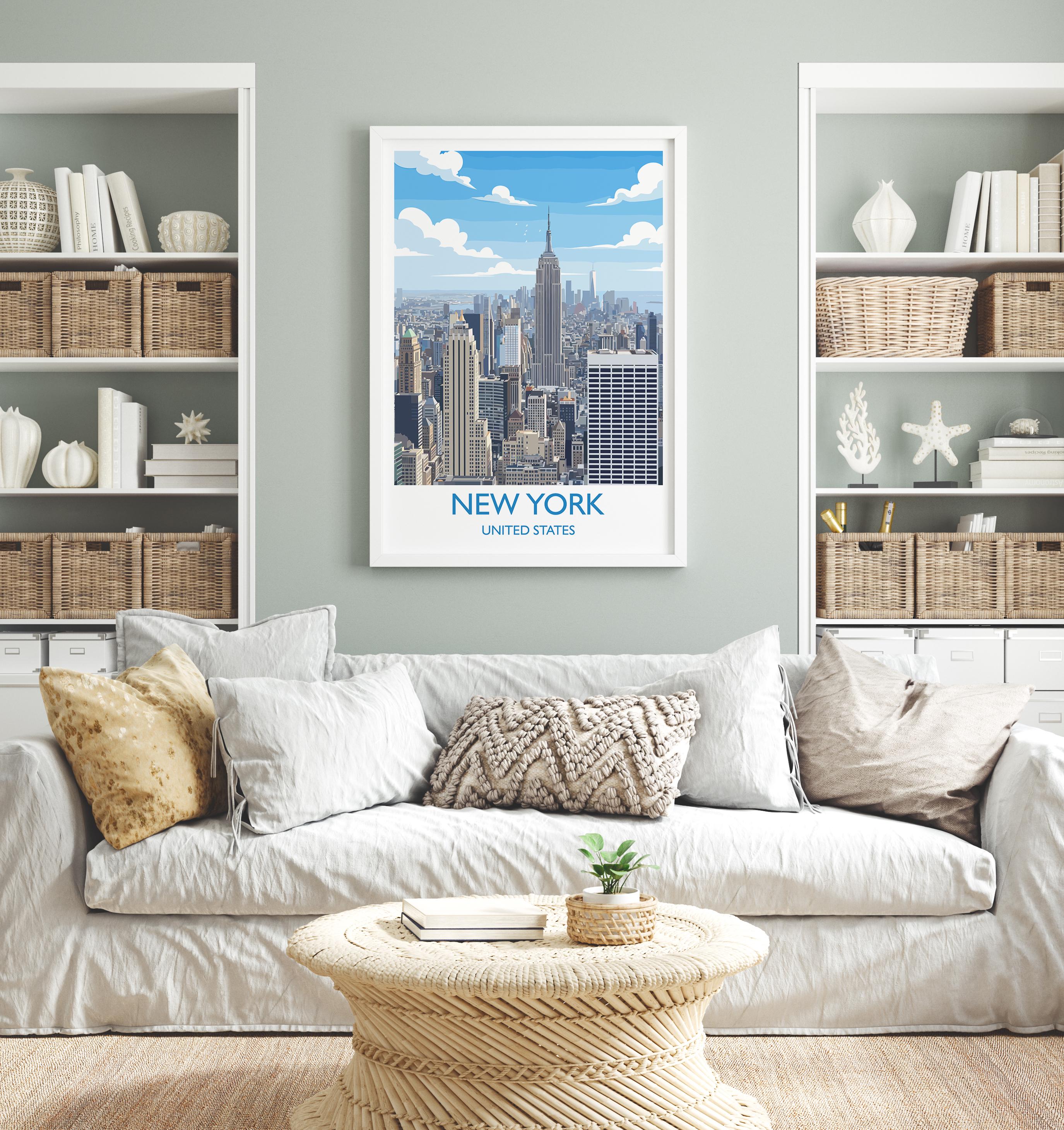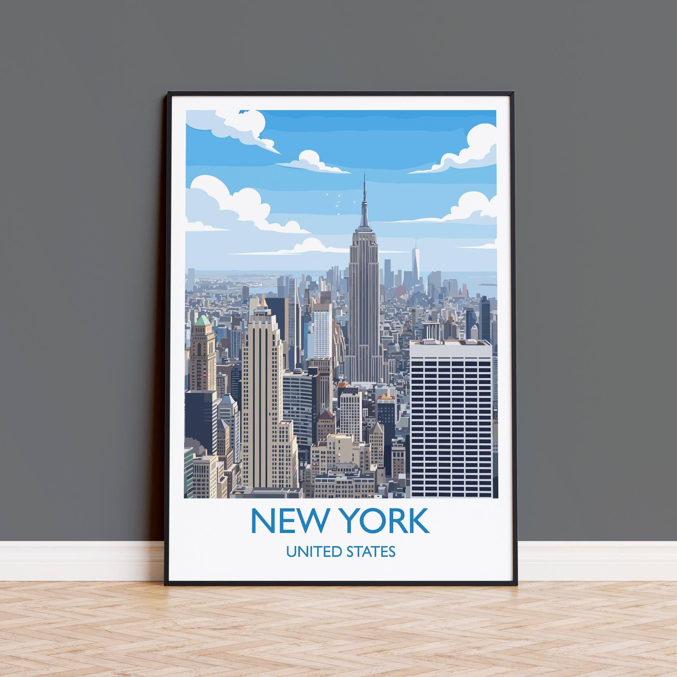 New York City Art Print, Manhattan Skyline View, Empire State, Travel Poster
