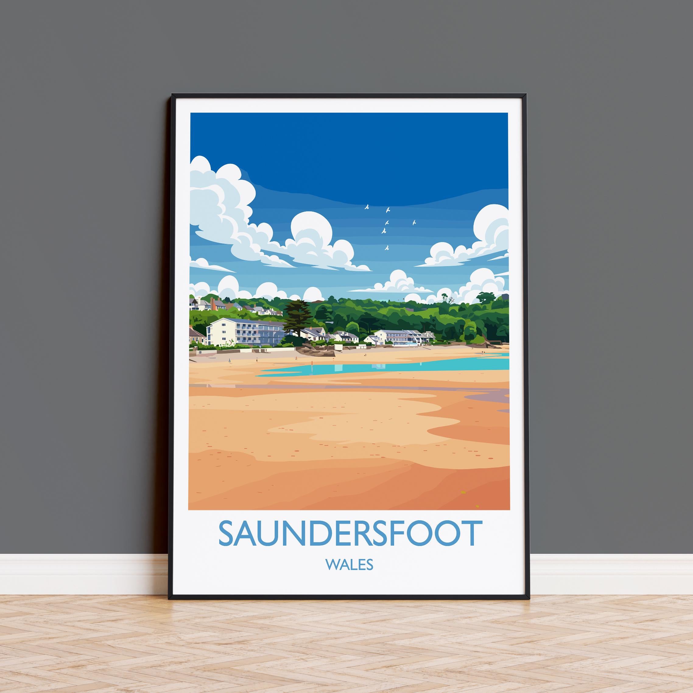 Saundersfoot Travel Poster – Pembrokeshire Coast Art | Welsh Wall Art Print