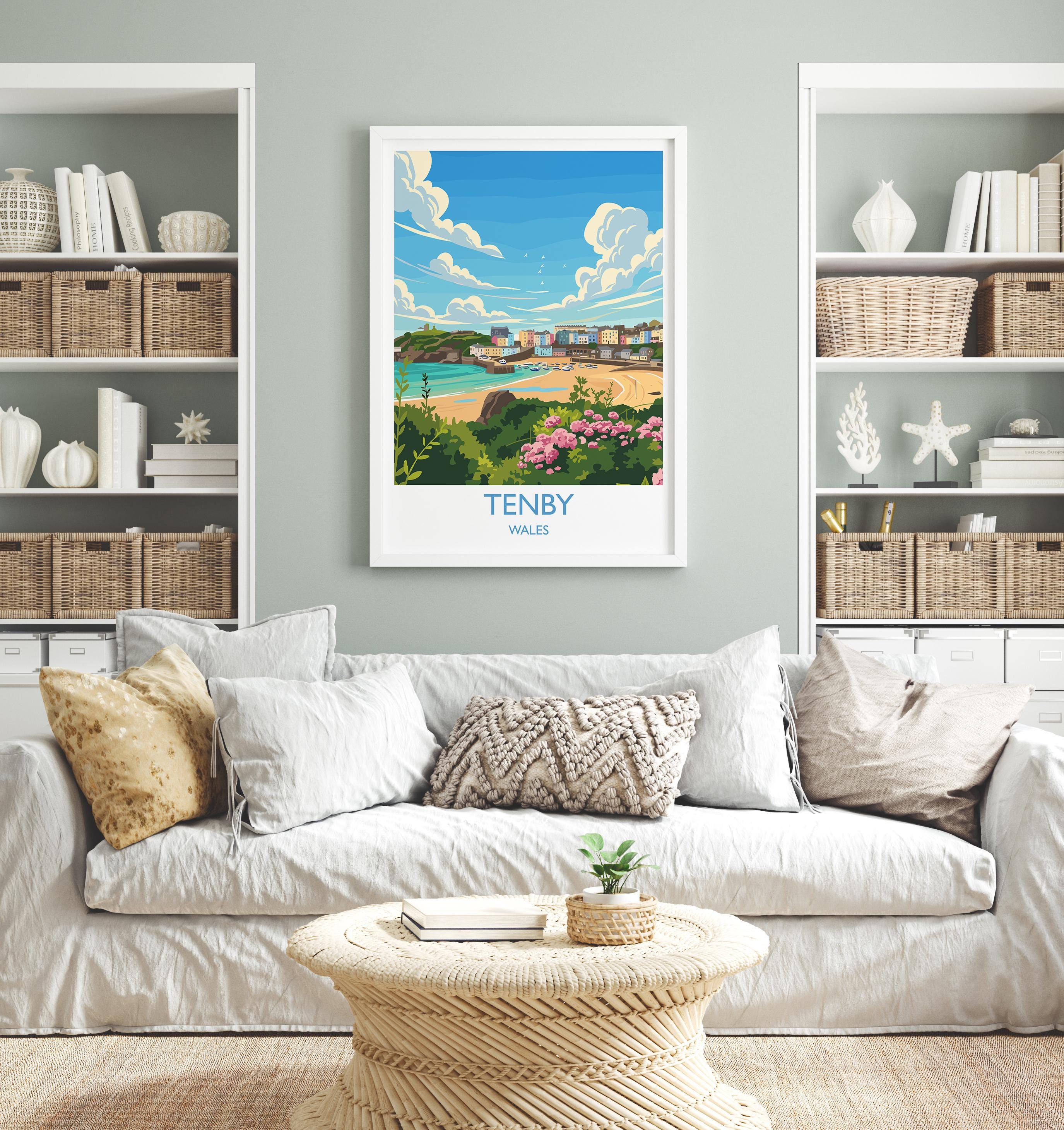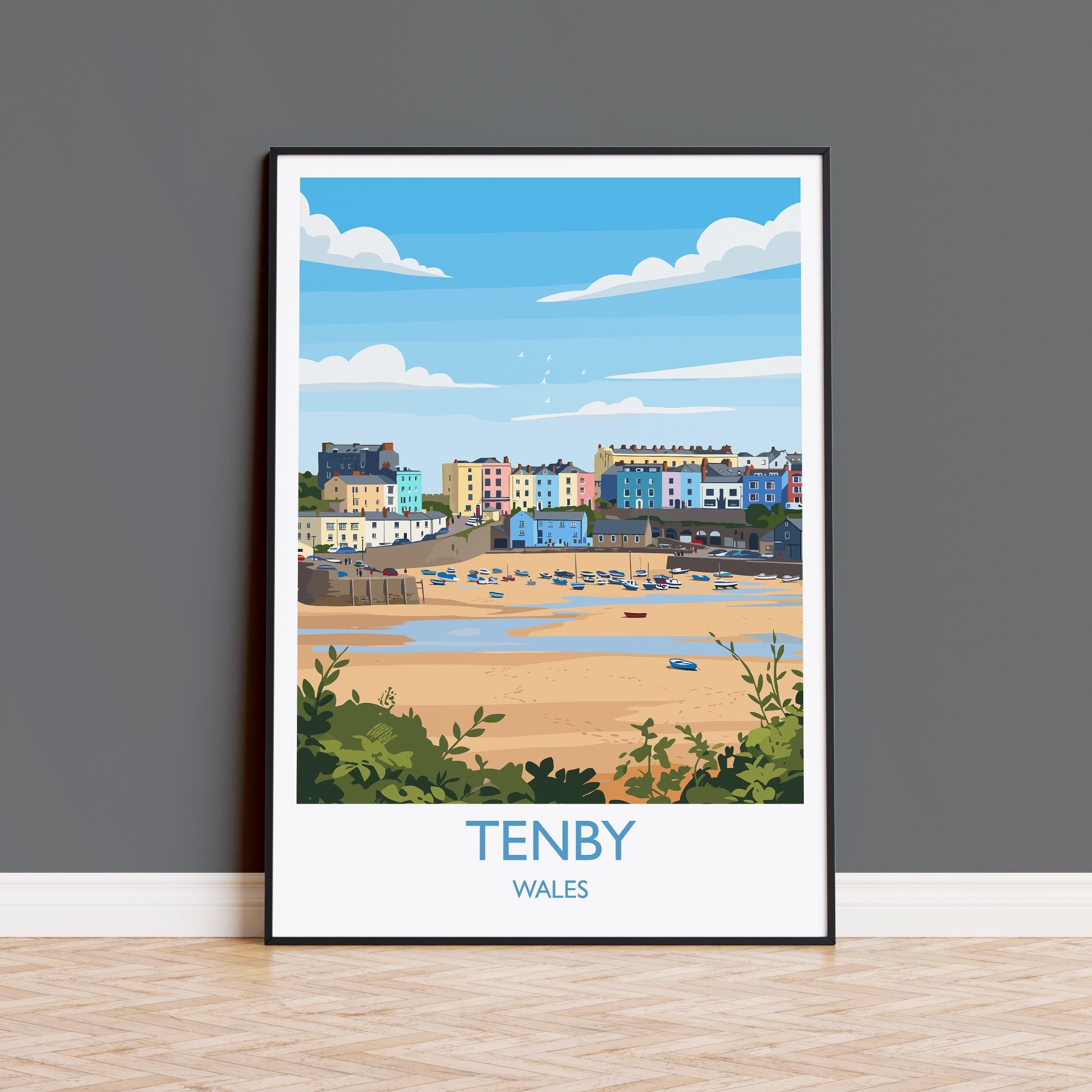 Tenby Travel Poster Wall Art, Tenby Travel Print, Wales, Pembrokeshire Coast Art Gift, Welsh Wall Art Print